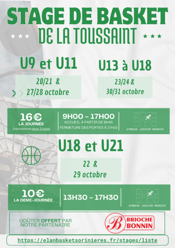 - Stage de 9h00 à 17h00