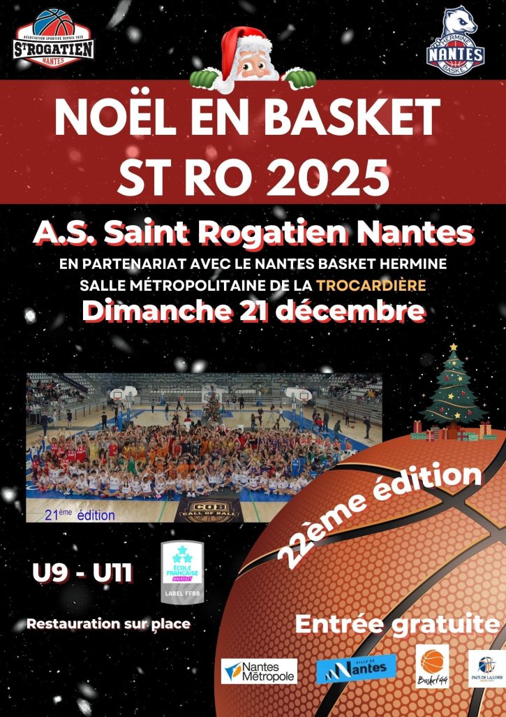 Après une 21ème édition réussie à la Salle Métropolitaine de La TROCARDIERE à Rezé, de notre traditionnel Tournoi de "NOËL en BASKET" destiné aux écoles de Basket, celui-ci revient une nouvelle fois.